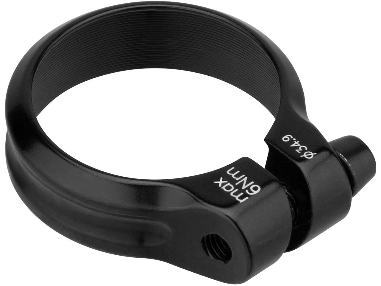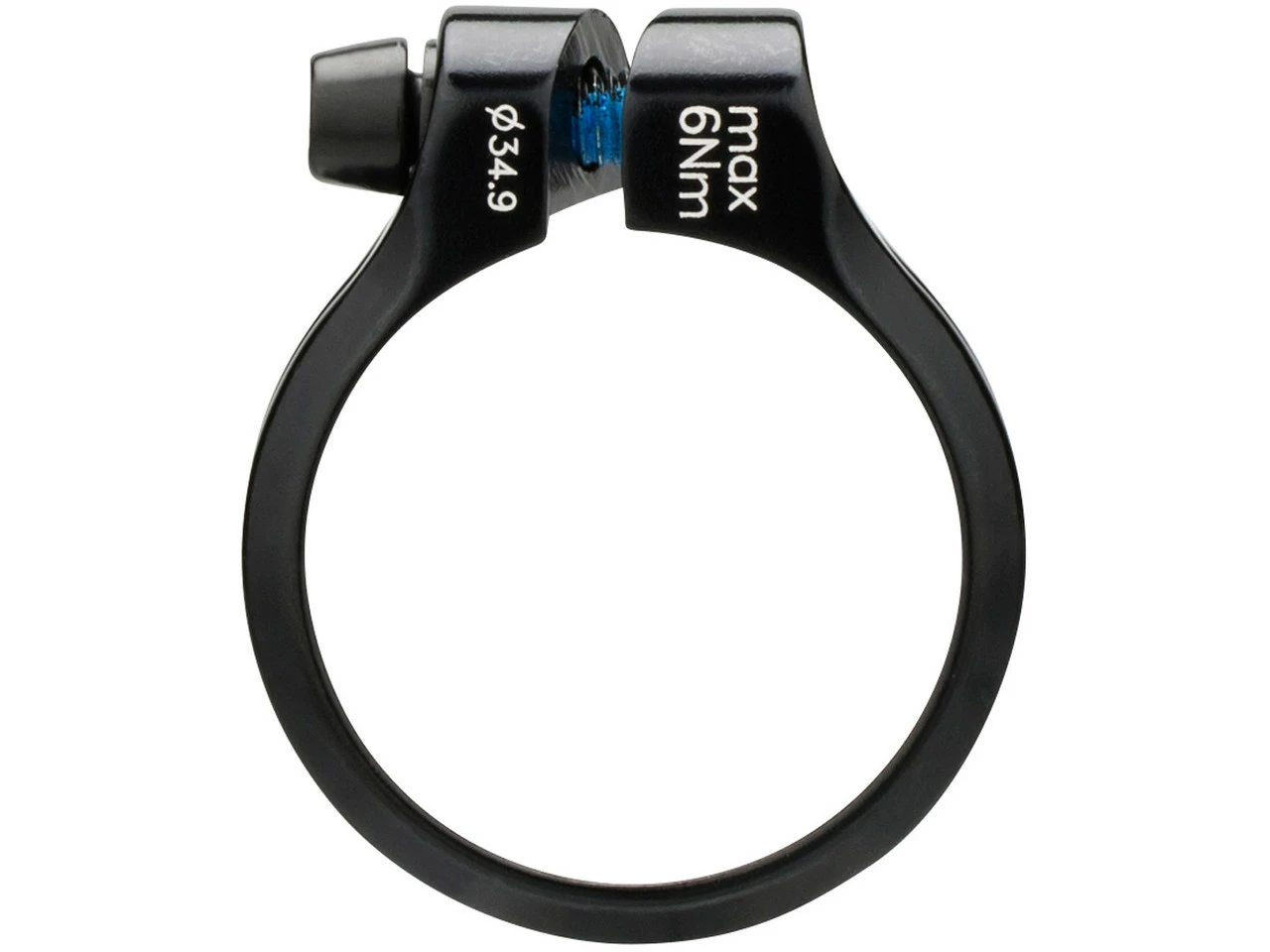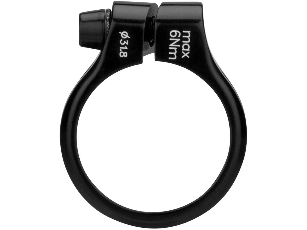 Die Sattelklemme von 3min19sec wird mit einer Innensechskantschraube geklemmt. Sie überzeugt durch ihr schlichtes Design und bringt mit 13 g kaum Mehrgewicht an Dein Rad. Die Klemme besteht aus Aluminium und ist 13 mm hoch. In klassischem Schwarz gehalten, lässt sie sich sowohl für Mountainbikes wie für Rennräder wie für Trekkingbikes verwenden. Du hast die Wahl zwischen einer Ausführung für den Sattelrohr-Durchmesser 31,8 mm und einer Version für 34,9 mm. Ziehe die Schraube mit maximal 6 Nm an.