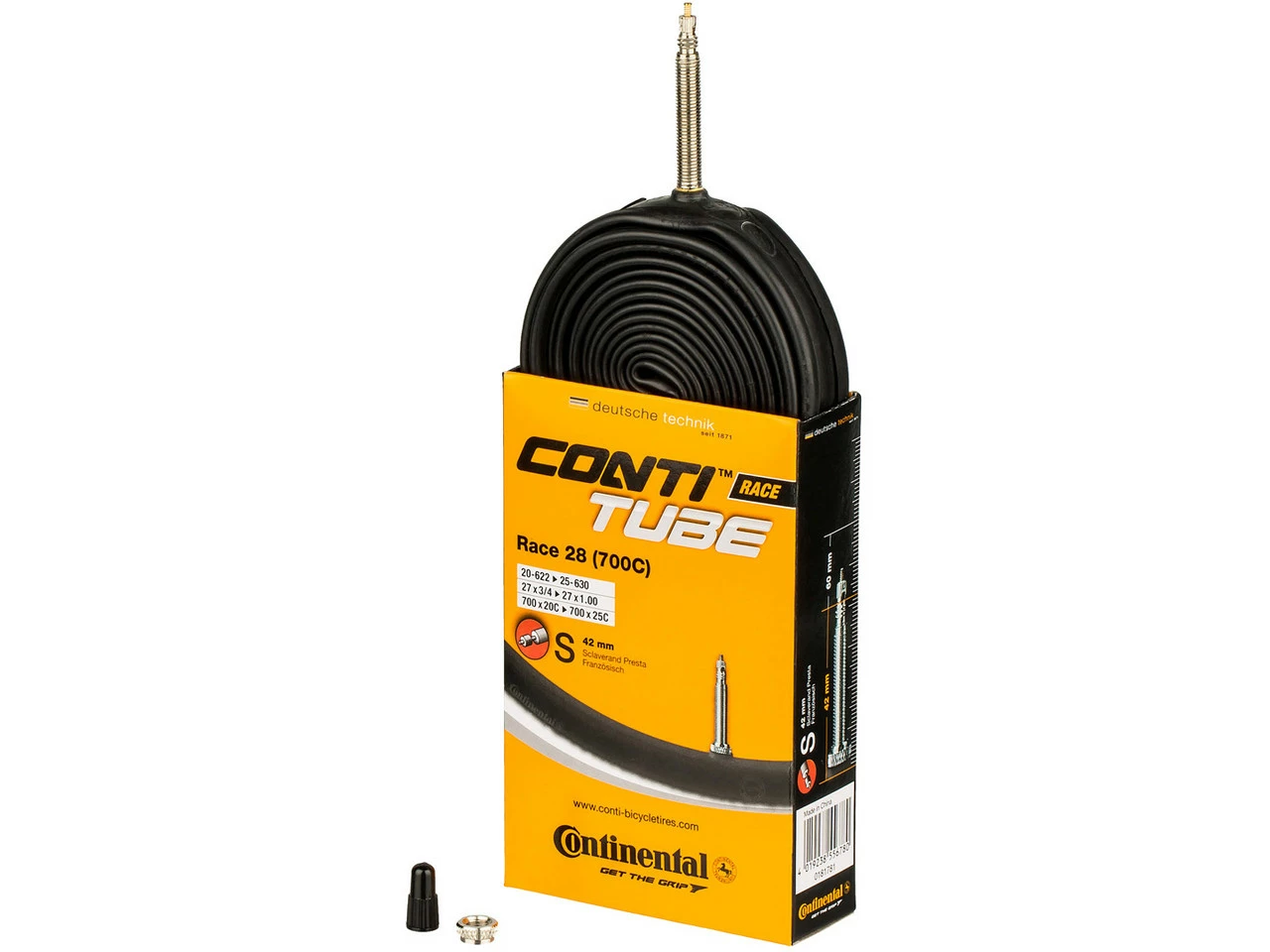 Bezeichnungen/Synonyme: Sclaverand-Ventil (SV), Französisches Ventil, Presta-VentilAußendurchmesser: 6,5 mmSonstiges: Bei allen Continental-Schläuchen mit SV-Ventil ist das Ventil abschraubbar (Ventilverlängerung, Befüllen mit Antiplatt-Mitteln etc.).Lieferumfang:10 x Schlauch Continental Race 28