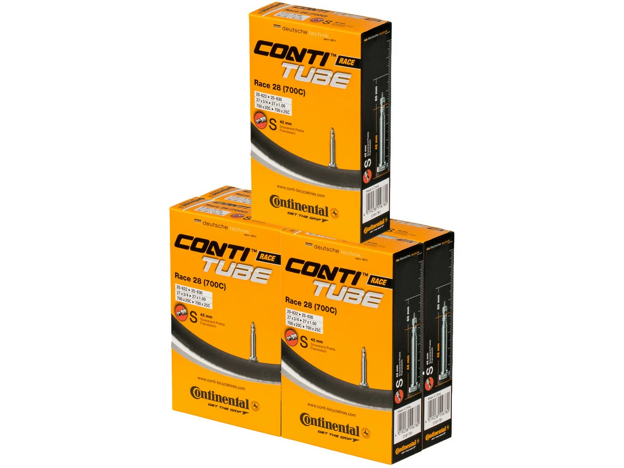 Bezeichnungen/Synonyme: Sclaverand-Ventil (SV), Französisches Ventil, Presta-VentilAußendurchmesser: 6,5 mmSonstiges: Bei allen Continental-Schläuchen mit SV-Ventil ist das Ventil abschraubbar (Ventilverlängerung, Befüllen mit Antiplatt-Mitteln etc.).Lieferumfang:5 x Schlauch Continental Race 28