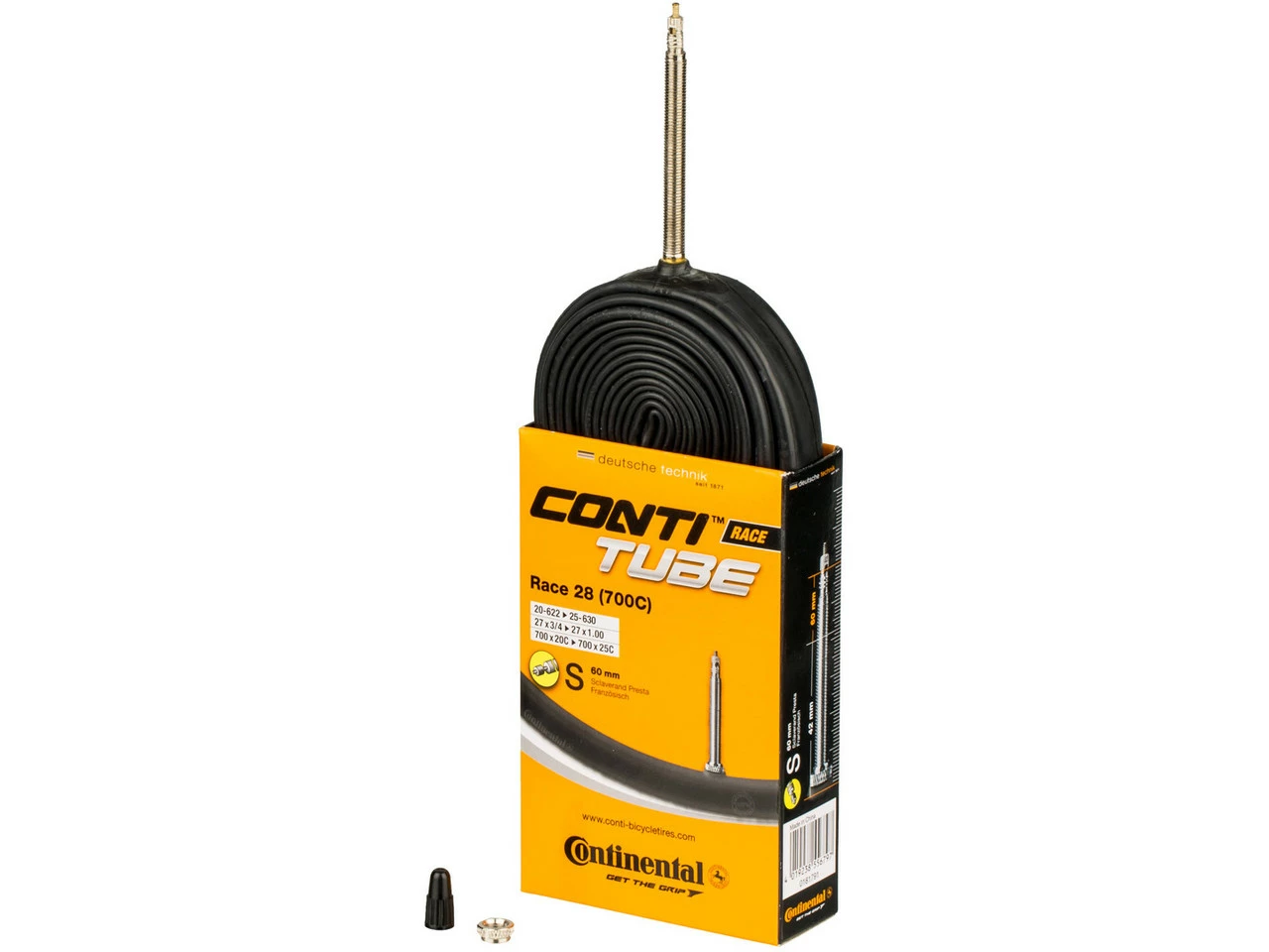 Bezeichnungen/Synonyme: Sclaverand-Ventil (SV), Französisches Ventil, Presta-VentilAußendurchmesser: 6,5 mmSonstiges: Bei allen Continental-Schläuchen mit SV-Ventil ist das Ventil abschraubbar (Ventilverlängerung, Befüllen mit Antiplatt-Mitteln etc.).Lieferumfang:1 x Schlauch Continental Race 28