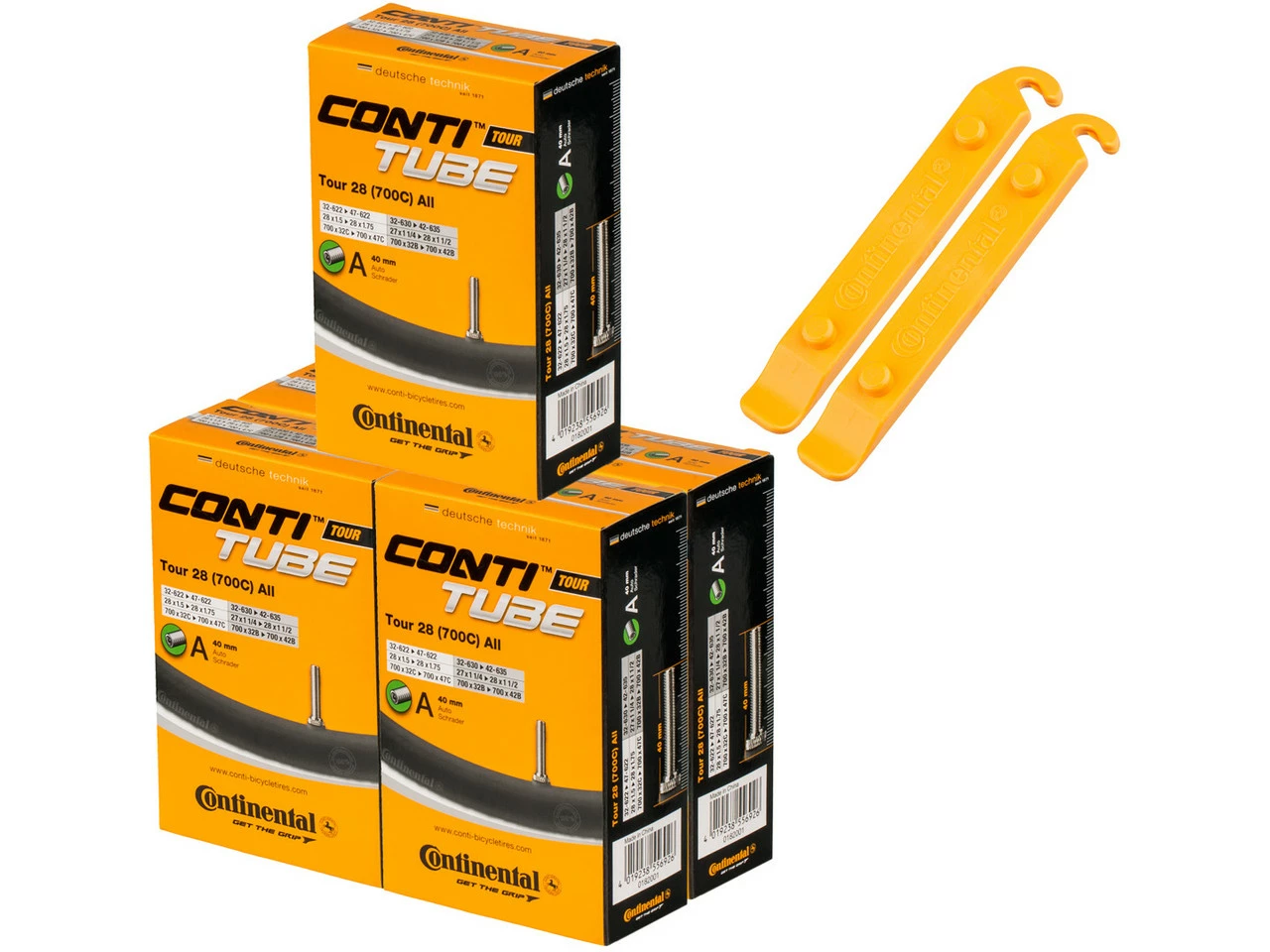 28″ Schlauch für Trekkingreifen im Set mit 5 Stück. Zusätzlich zum Set erhältst Du 2 Reifenheber gratis (nur solange der Vorrat reicht).