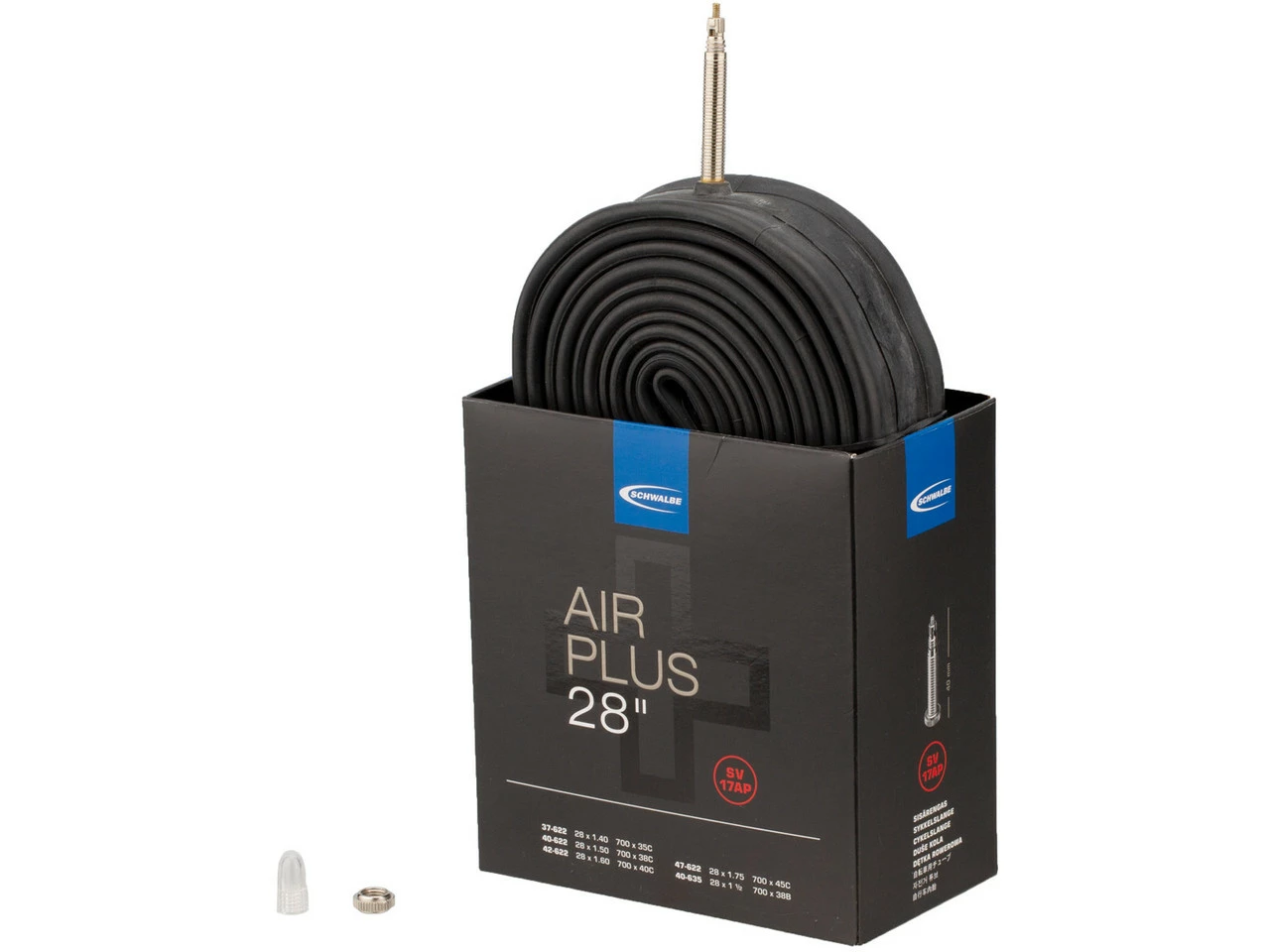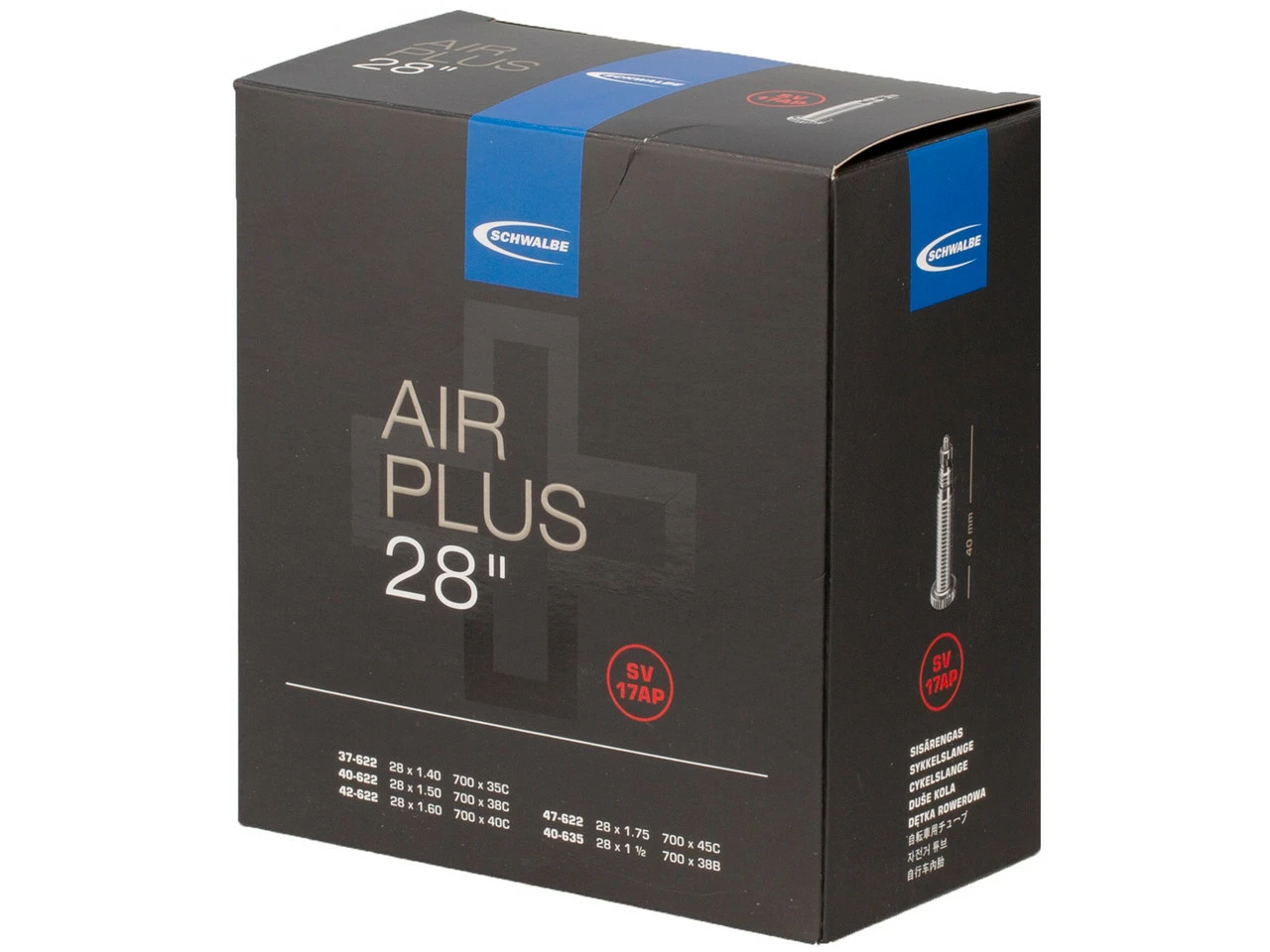 Der Air Plus Schlauch 17 von Schwalbe zeichnet sich durch besondere Pannensicherheit und Lufthaltigkeit aus und ist damit auch für E-Bikes und Cargo-Bikes mit 28″ Laufrädern geeignet. Möglich ist das durch eine 70 % höhere Wandstärke und einen hohen Anteil aus reinem Butylkautschuk.