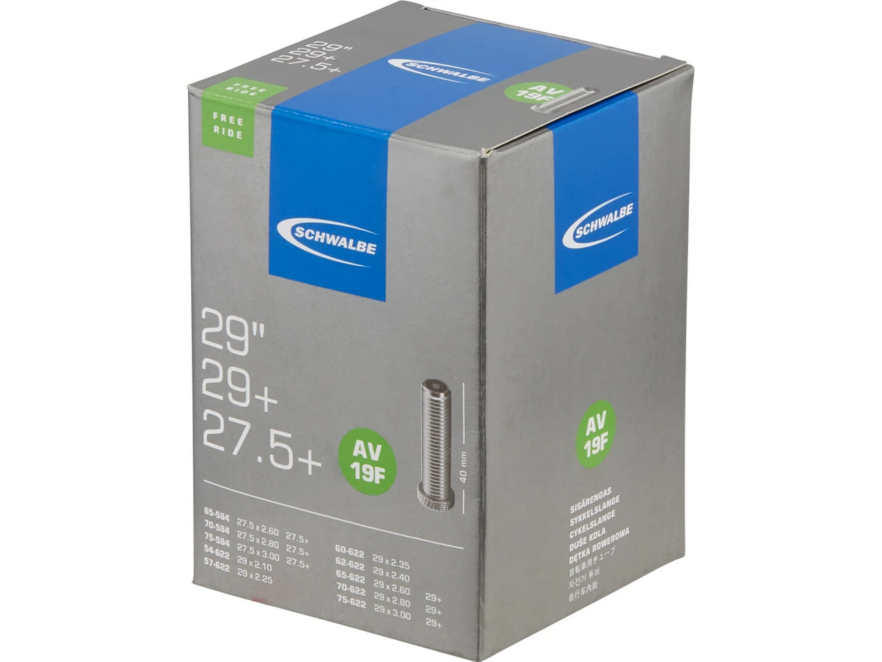 Spezifikationen:Einsatzbereich:FreerideETRTO:65-584 bis 75-584, 54-622 bis 75-622Reifendimension:27,5 x 2,60″ bis 27,5 x 3,0″ , 29 x 2,10″ bis 29 x 3,0″Schlauchmaterial:ButylVentilart:SV 40 mm, AV 40 mmPassende Dimensionen (ETRTO):27,5 x 2,60 (65-584)27,5 x 2,80 (70-584)27,5 x 3,0 (75-584)29 x 2,10 (54-622)29 x 2,25 (57-622)29 x 2,35 (60-622)29 x 2,40 (62-622)29 x 2,60 (65-622)29 x 2,80 (70-622)29 x 3,0 (75-622)Ausführungen:27,5-29 x 2,10-3,0 SV 40 mm