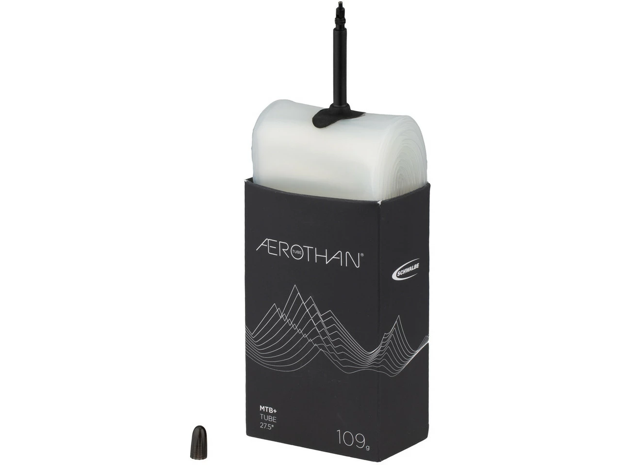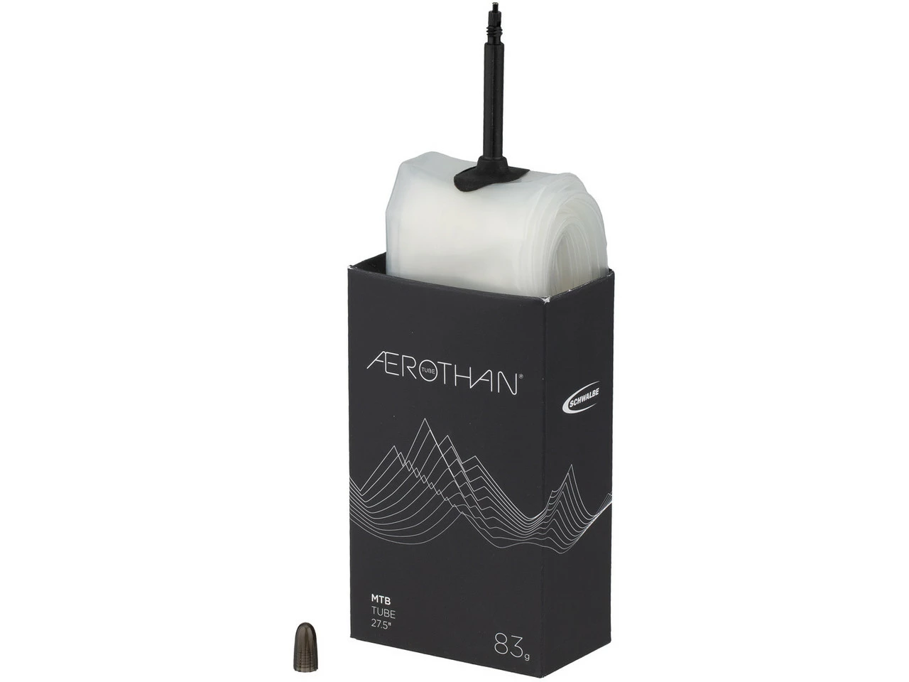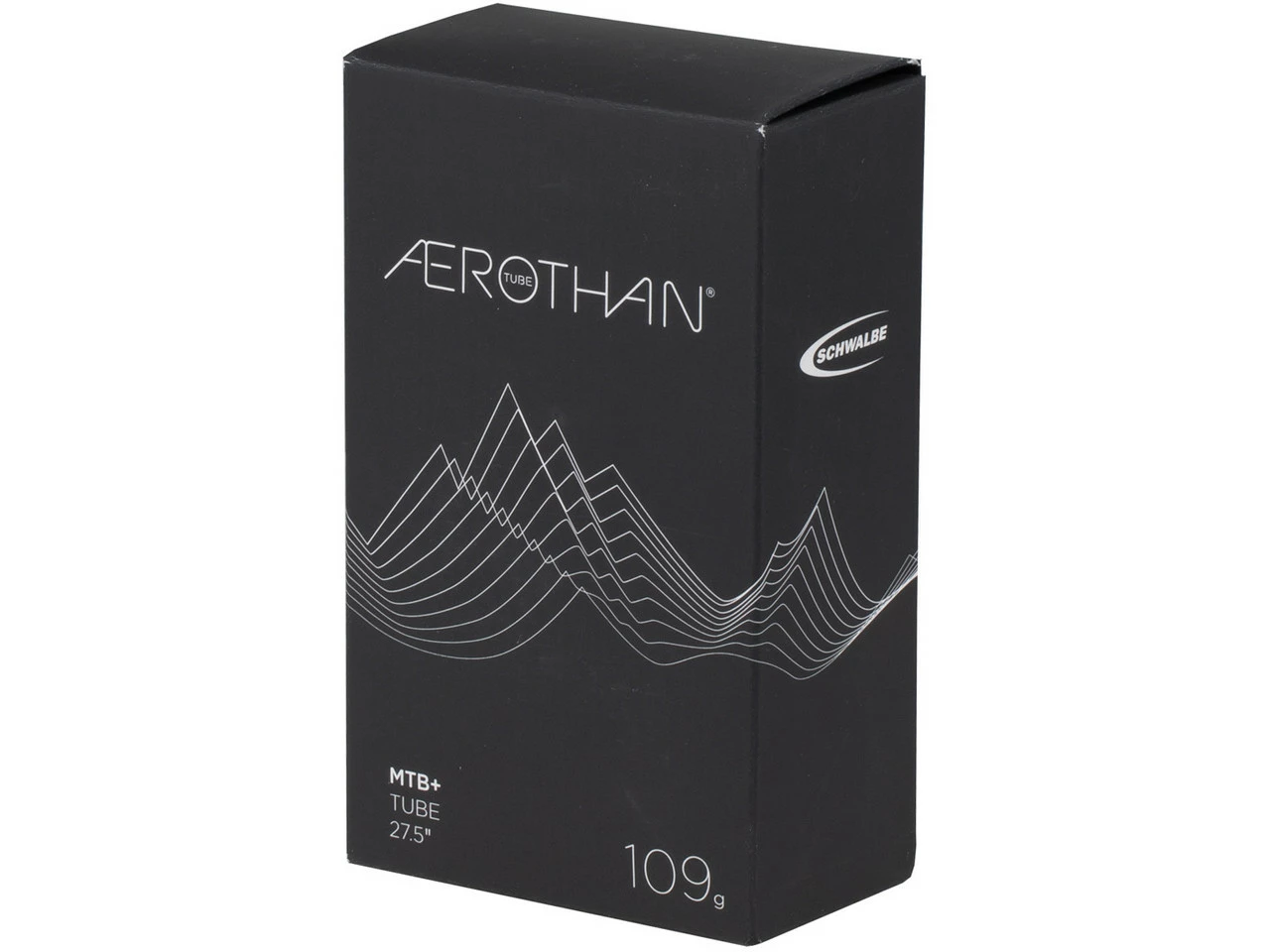 Der Aerothan Schlauch von Schwalbe für 27,5″ und 27,5+ Mountainbike-Reifen kombiniert optimale Pannensicherheit, niedriges Gewicht und minimalen Rollwiderstand. Selbst bei niedrigem Luftdruck behält er seine Form und das robuste Material verhindert Snakebites und Seitenwandschäden.