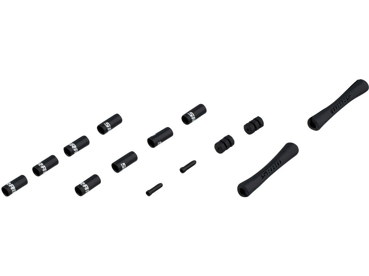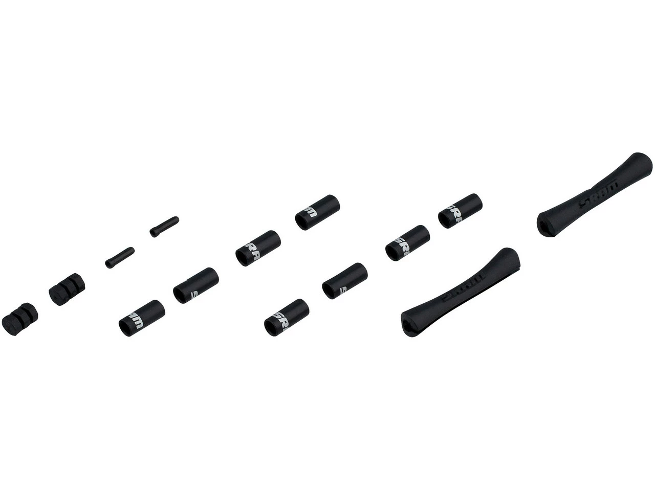Das Schaltzug Kit von SRAM ist für Road- und MTB-Schaltungen geeignet und beinhaltet zwei Innenzüge, eine verstärkte Außenhülle sowie Anschlaghülsen, Endtüllen, Rahmenschutzhülsen und Abstandhalter aus Gummi.