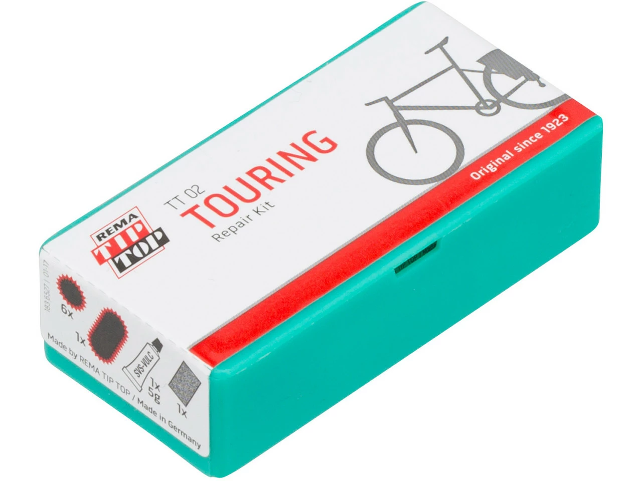 Lieferumfang:6 x Flicken Tip Top Größe F1 (ø 25 mm)1 x Flicken Tip Top Größe F2 (50 x 25 mm)1 x Tube Tube SVS-Lösung à 5 g1 x Schleifpapier
