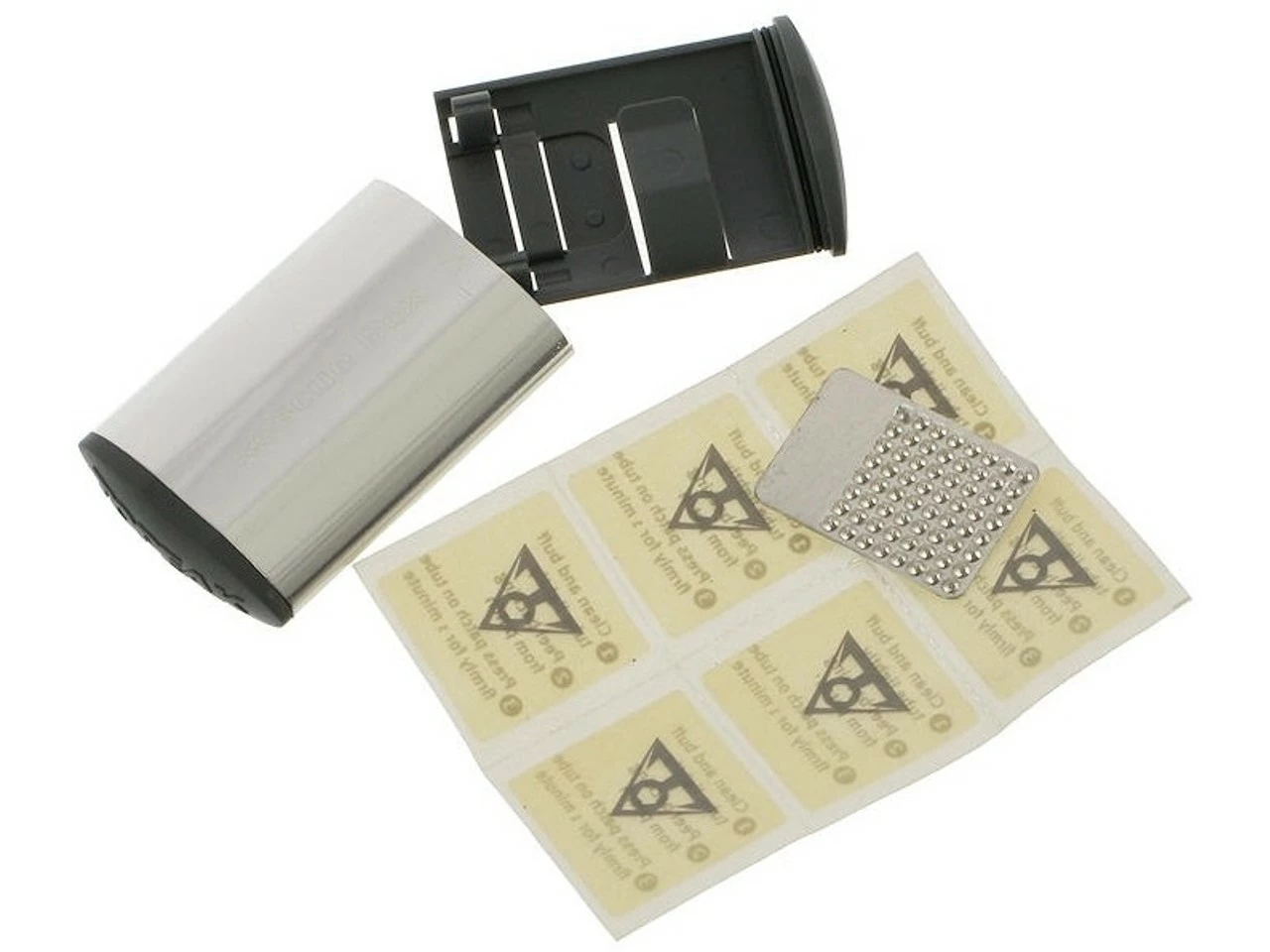 Technische Daten:Einsatzbereich:Mountain, Road, Touring, CommuteFunktionen:6 Flicken, 1 SchleifpapierMaterial Transportbox:Aluminium / Fiberglas CompositeAbmessungen (LxBxH):6 x 3,6 x 1,2 cmSonstiges:Halteclip; praktisches Extrafach für Kettenschloss und 2 Kettenpins (Nietstifte und Kettenschloss nicht im Lieferumfang)Features:Profi-Reparaturset im kompakten, wasserdichten Gehäuse6 selbstklebende Flickenfür Rennrad- und Mountainbike-SchläucheHerstellernummern:silber:TRB01-Srot:TRB01-Rblau:TRB01-DBgold:TRB01-GDschwarz:TRB01-BLieferumfang:6 x Flicken Topeak, selbstklebend1 x Schleifpapier Topeakinkl. Transportbox