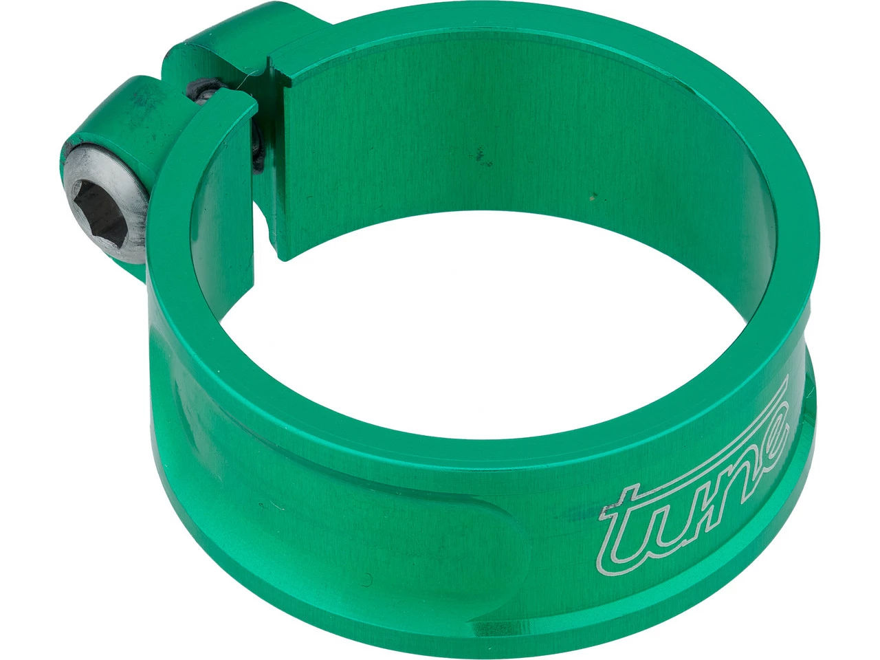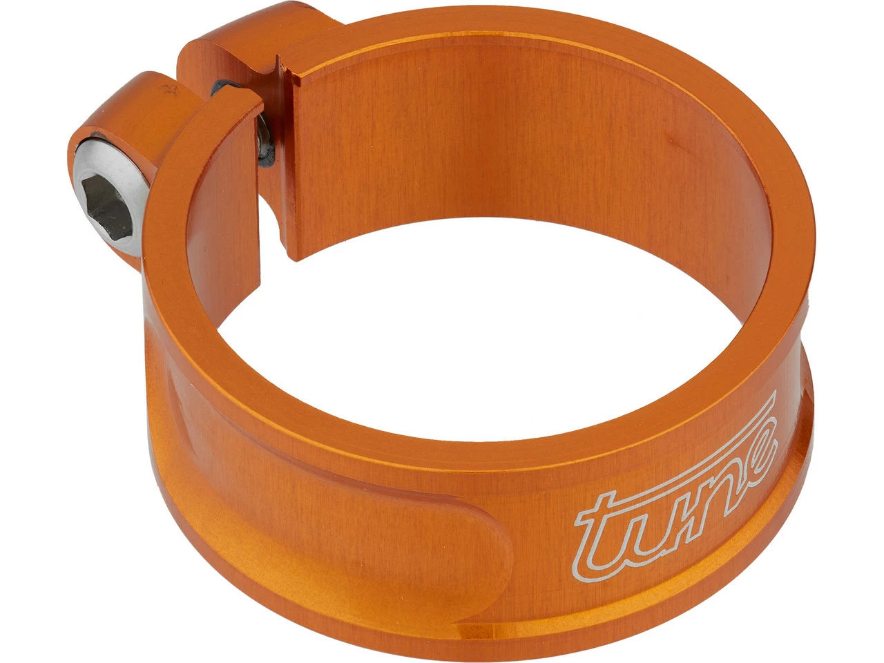 Die tune Schraubwürger Sattelklemme aus eloxiertem Aluminium sorgt für festen Halt der Sattelstütze im Sattelrohr.