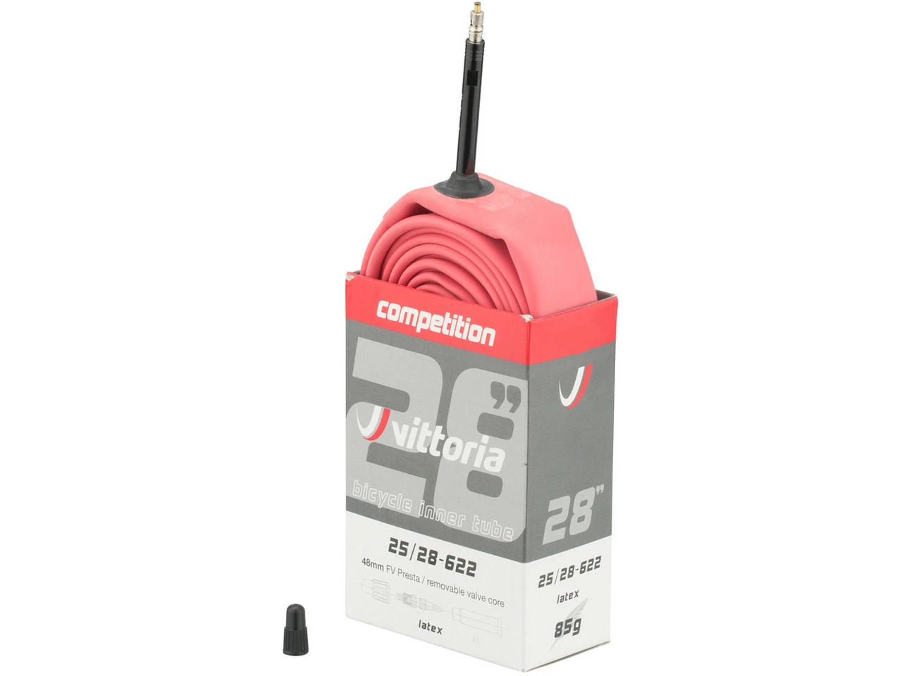 Bezeichnungen/Synonyme: Sclaverand-Ventil (SV), Französisches Ventil, Presta-VentilAußendurchmesser: 6,5 mmSonstiges: Bei allen Vittoria-Schläuchen mit SV-Ventil kannst Du das Ventil abschrauben. (zwecks Ventilverlängerung, Befüllen mit Antiplatt-Mitteln etc.)Lieferumfang:1 x Schlauch Vittoria Competition Latex